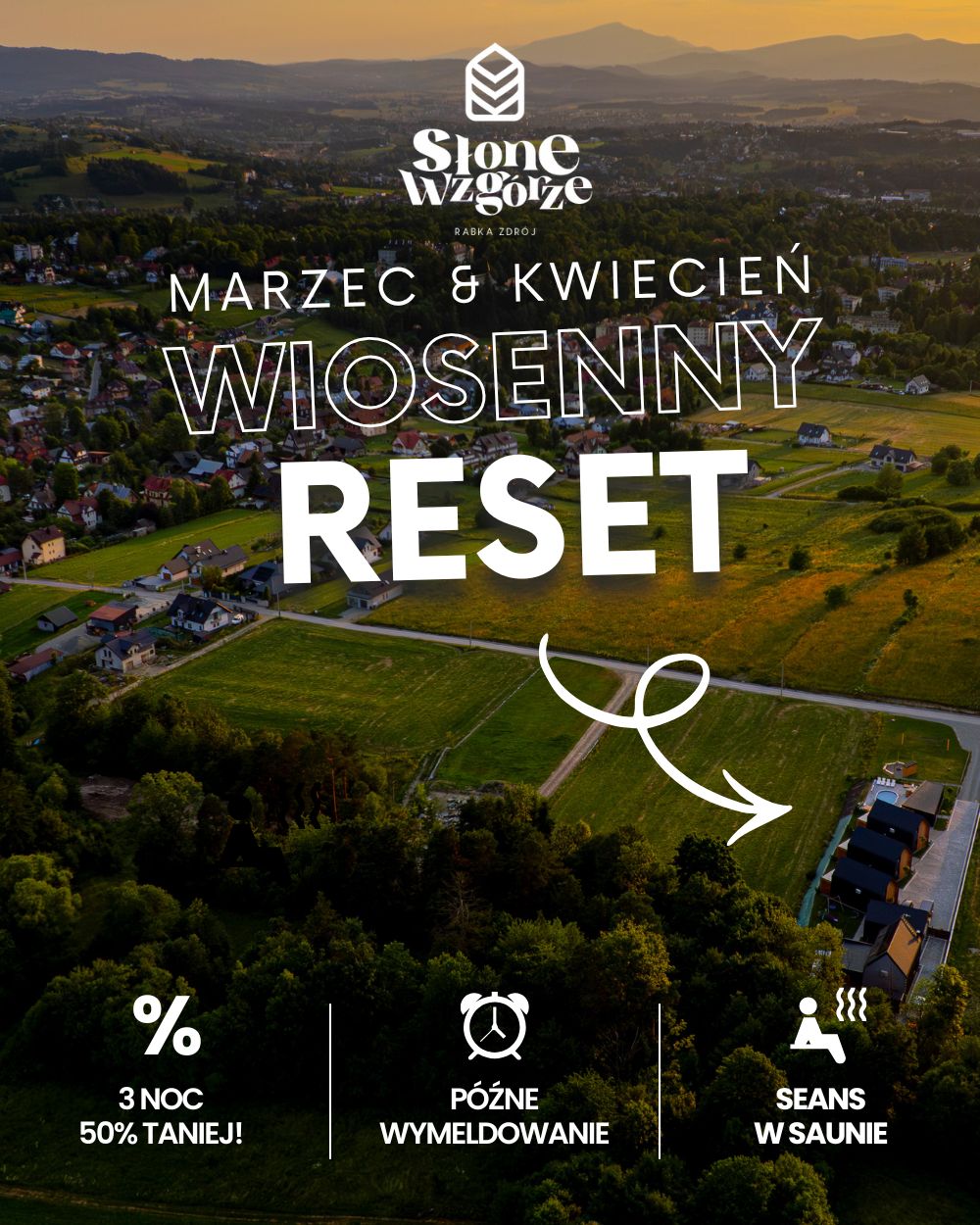 Witaj drogi podróżniku! Jest nam niezmiernie miło, że trafiłeś na naszą stronę. Zatrzymaj się tutaj na moment, a zobaczysz, że to miejsce zostało stworzone właśnie dla Ciebie! Na cudownym wzgórzu dumnie spoglądającym na Rabkę – Zdrój, w otoczeniu łąk i gorczańskich lasów, powstał kompleks luksusowych domków o nazwie Słone Wzgórze.